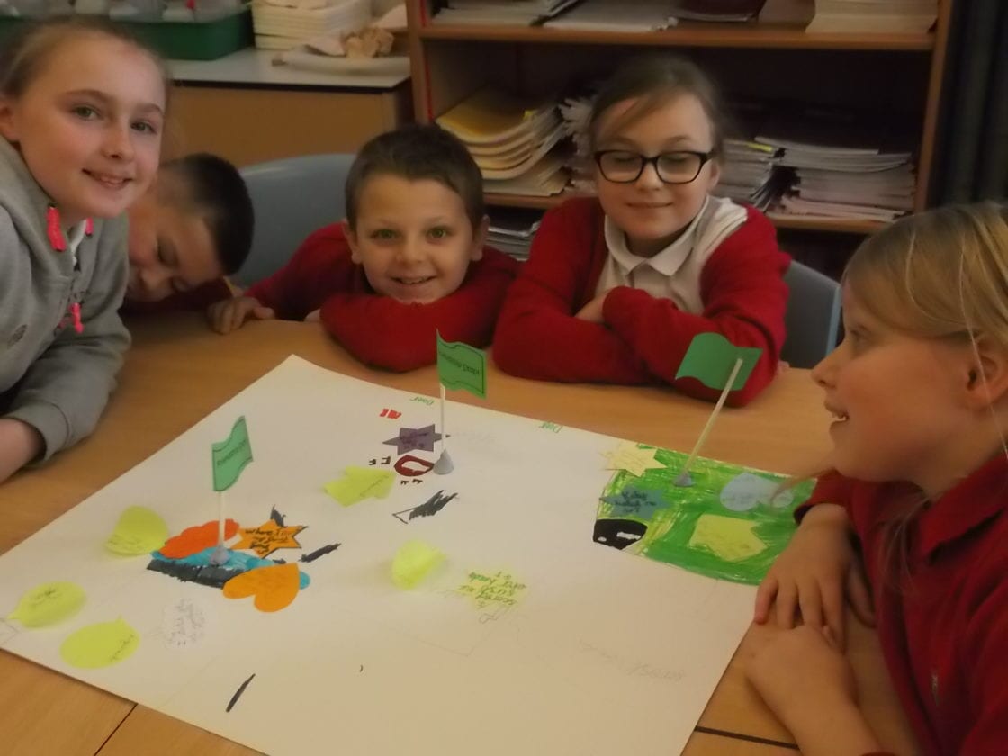 At Willington Primary School we are introducing the ‘Buddy Scheme’. This is a strategy initiated by the Anti-Bullying Service of Durham County Council. It aims to encourage positive relationships between children and reinforces ideas of how it might feel to be the victim of bullying. The programme empowers the pupils with strategies to make our playground a happier place to be for all children all of the time. Children in year 5 have been chosen as buddies. They have begun their training with Durham County Council Anti-Bullying Service with a variety of activities to help raise awareness about bullying, while building self-esteem, listening skills and understanding the feelings of others. This week they made maps of the playground and thought about which parts would make good safe zones and friend zones as well as understanding how not so nice words can affect our feelings!
