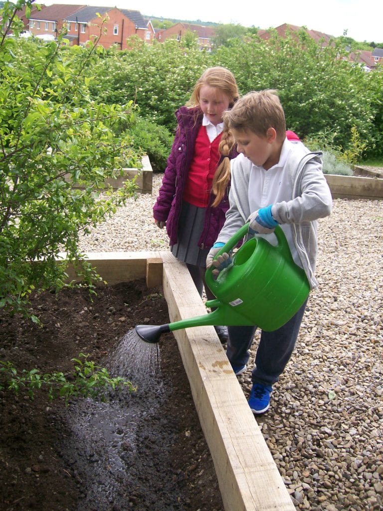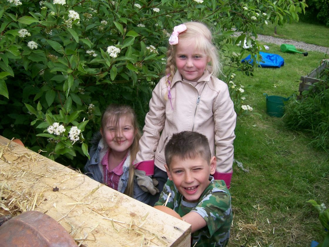 The children are hoping to attract all sorts of pollinating insects to take up residence in the plush accomodation. As you can see from the photographs they had lot’s of fun working together outside creating the structure and tending to their wildlife garden!